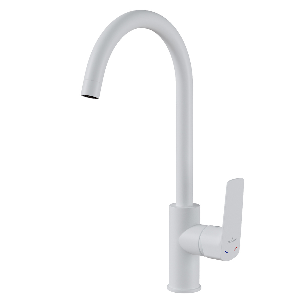 Смеситель для кухни 35k MIXLINE ML15-031W высокий излив б/отв боковая п/гайку (без подводки) БЕЛЫЙ