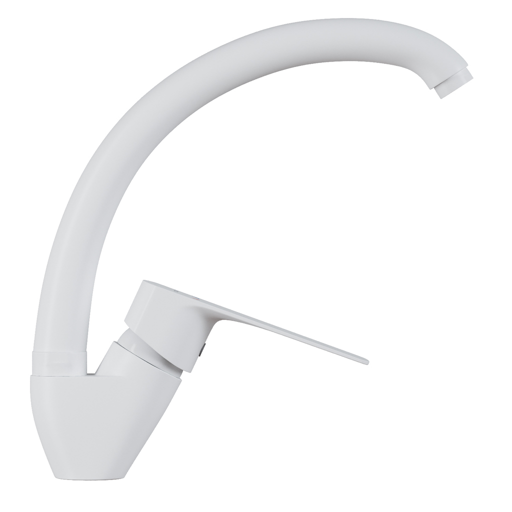 Смеситель для кухни 35k MIXLINE ML15-032W высокий излив б/отв боковая п/гайку (без подводки) БЕЛЫЙ