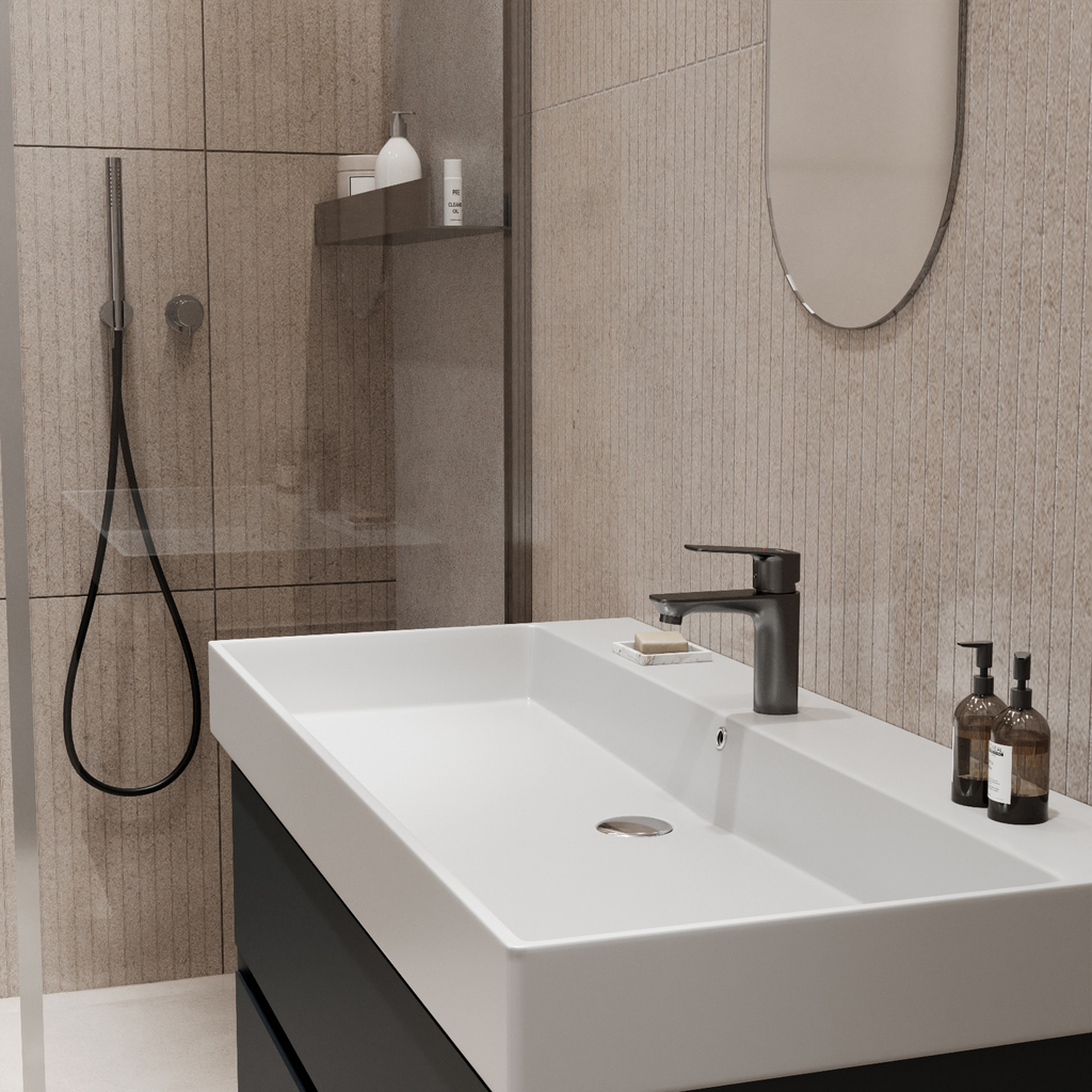 Смеситель для раковины 40k MIXLINE ML15-04GR б/отв п/гайку (без подводки) ГРАФИТ