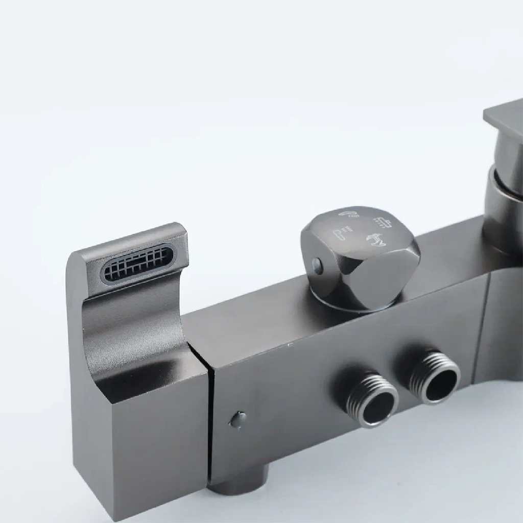 Душевая система PSM-900-82GA выполнена из авиаля (авиационный алюминий). Это сплав алюминия с добавлением различных элементов, таких как магний, марганец, кремний, цинк и прочие. Добавки значительно улучшают характеристики алюминия, делая его более прочным, стойким к коррозии и способным выдерживать высокие и низкие температуры.