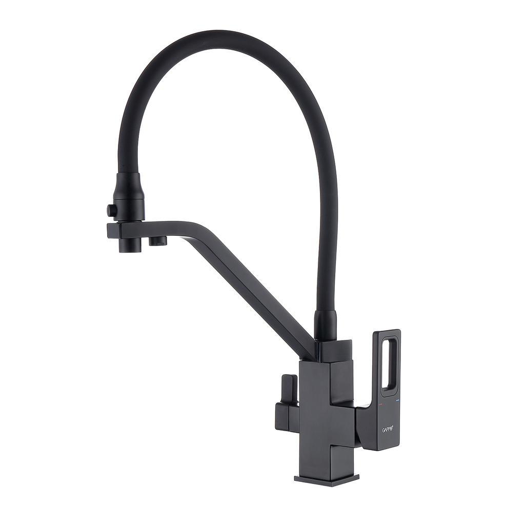 Смеситель для кухни 35k G4317-6 GAPPO с вых. для питьевого фильтра, п/шпильку, гибкий излив ЧЕРНЫЙ