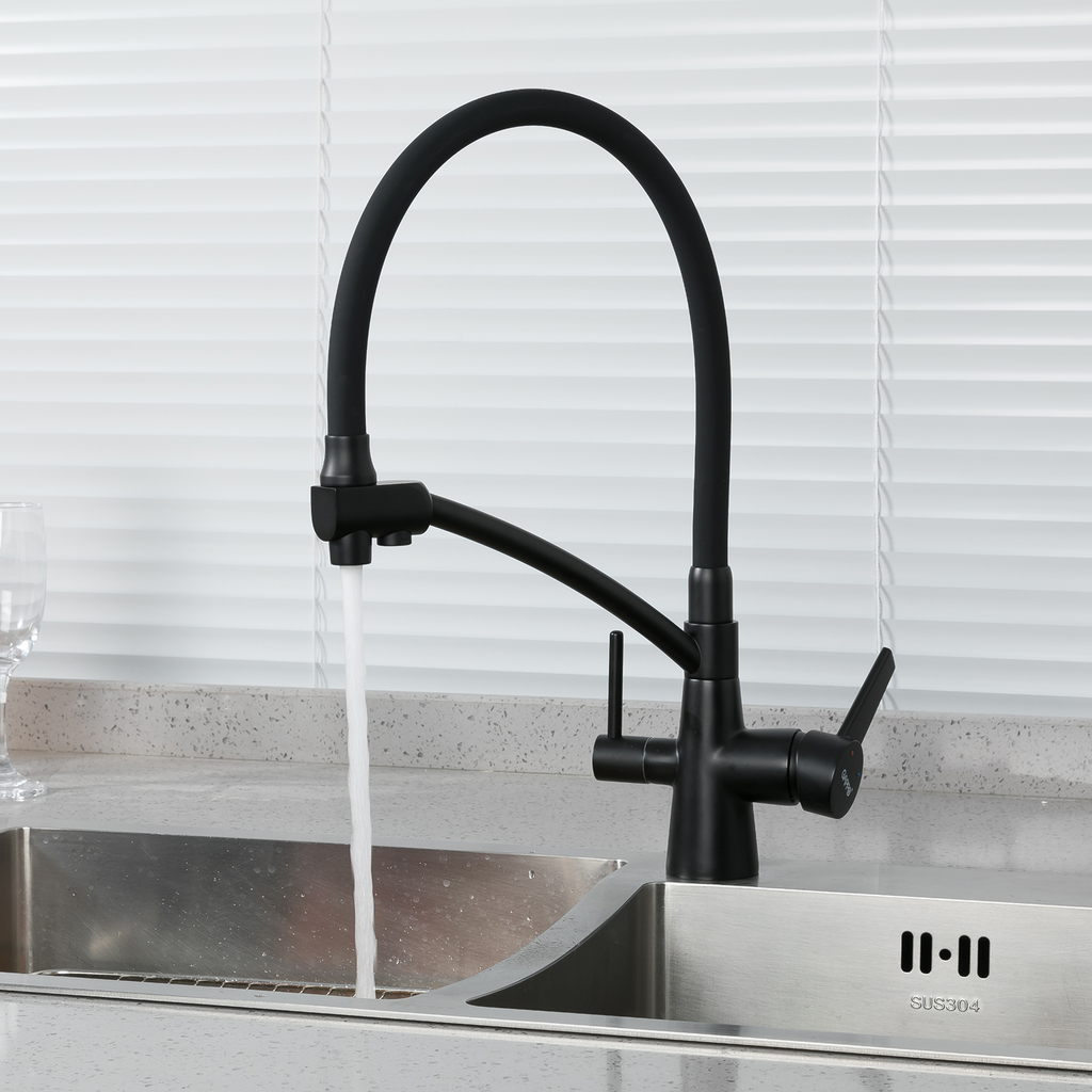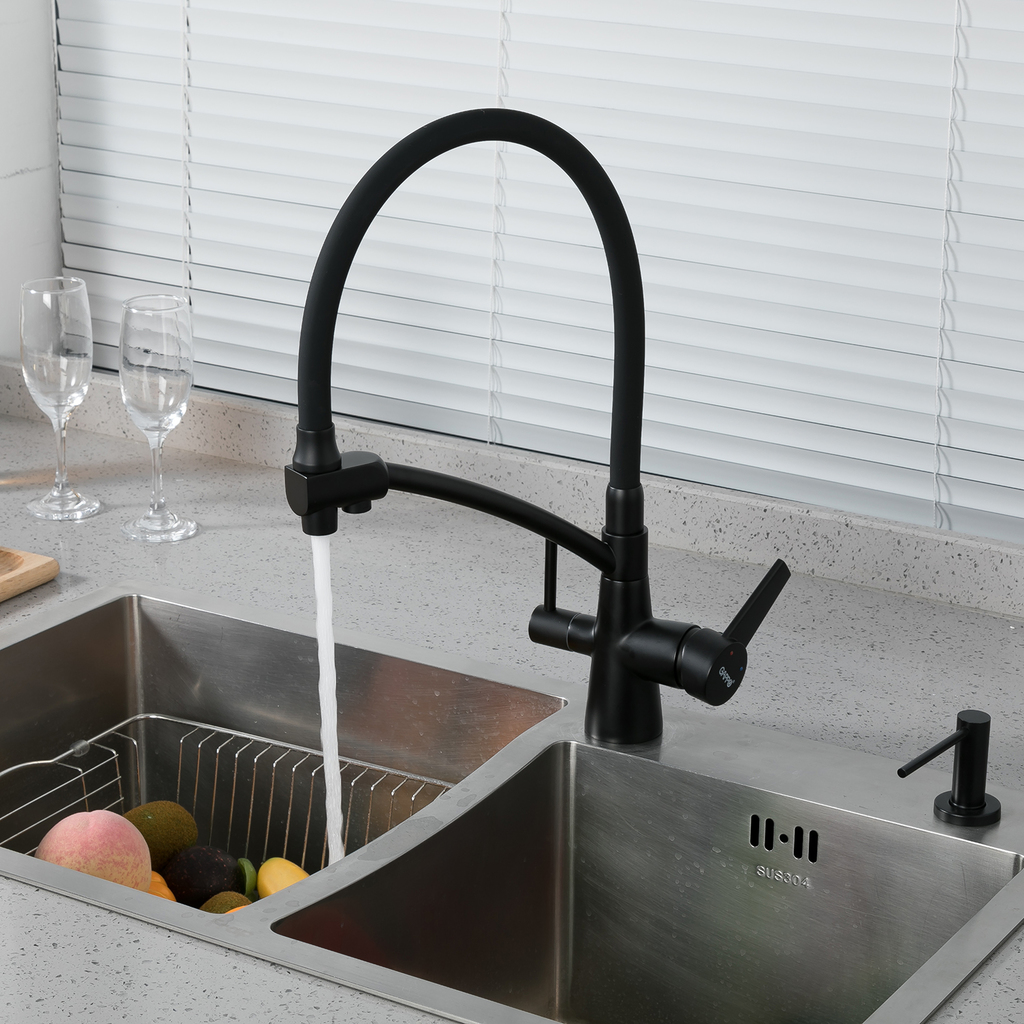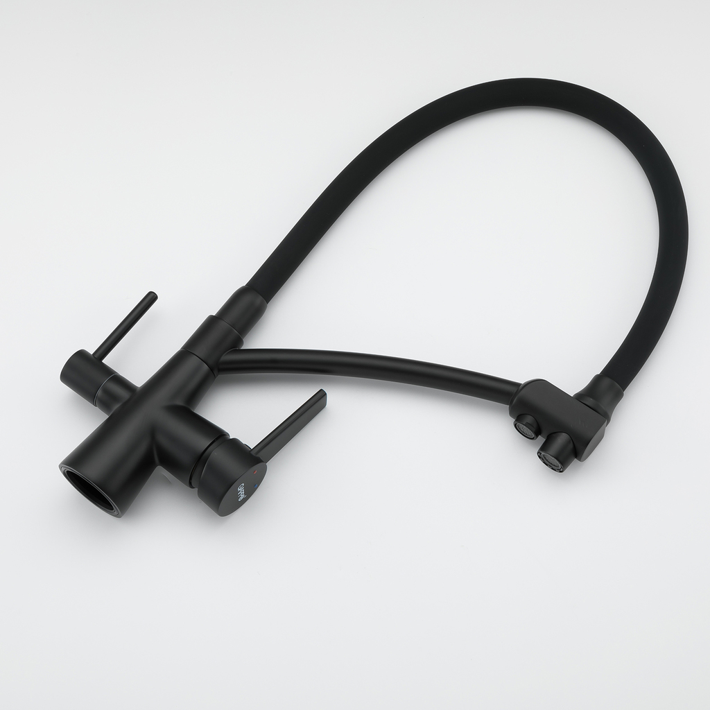 Смеситель для кухни 35к G4398-16 GAPPO гибкий излив, с вых. для питьевого фильтра, ЧЕРНЫЙ