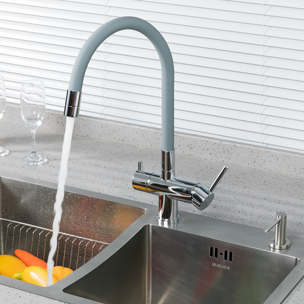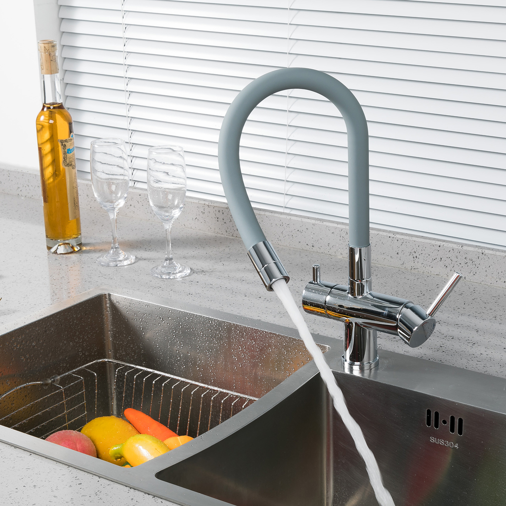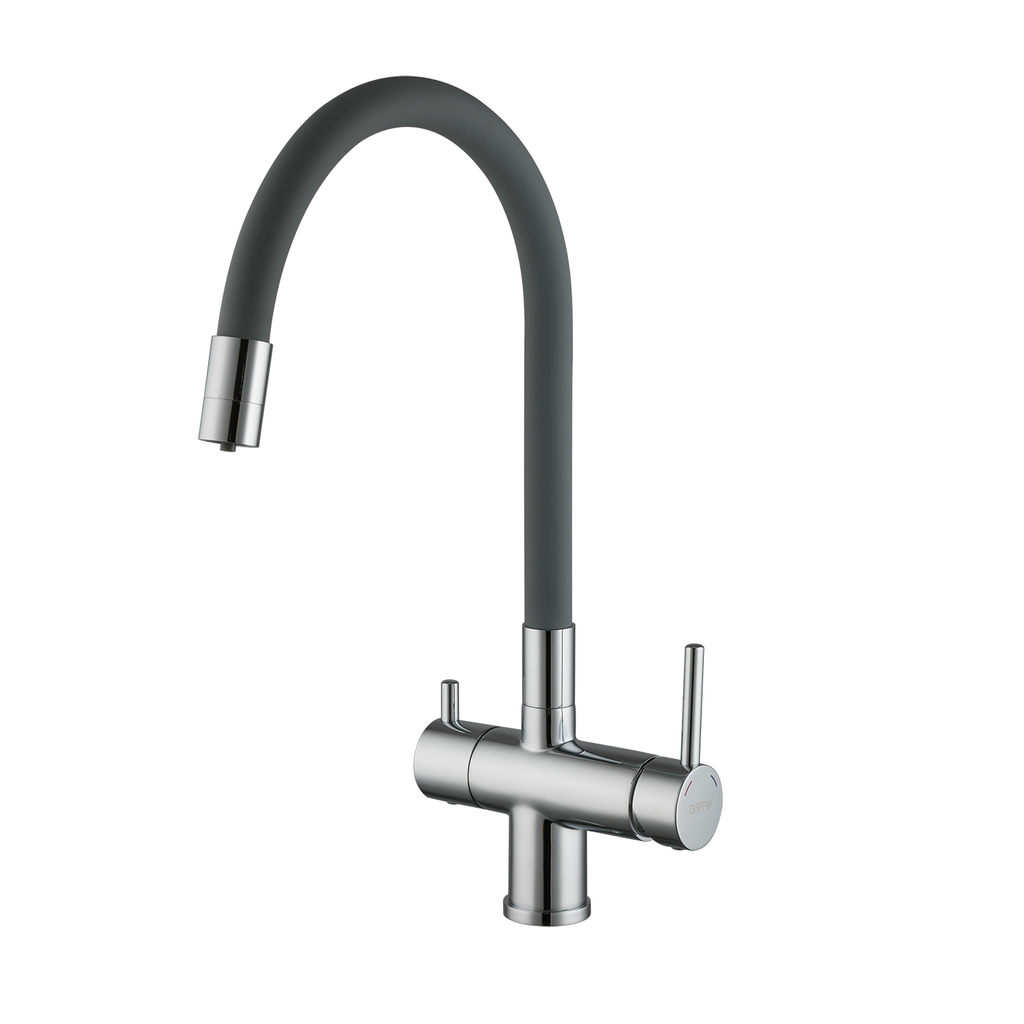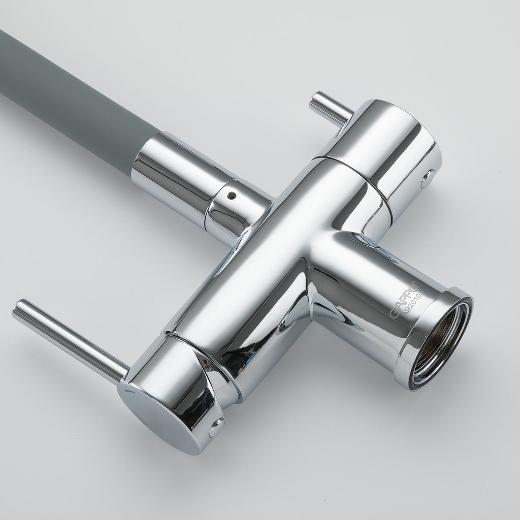 Смеситель для кухни 35к G4398-30 GAPPO гибкий излив, с вых. для пит. фильтра, п/шпильку СЕРЫЙ-хром