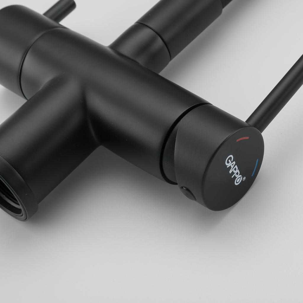 Смеситель для кухни 35к G4398-36 GAPPO гибкий излив, с вых. для питьевого фильтра, ЧЕРНЫЙ