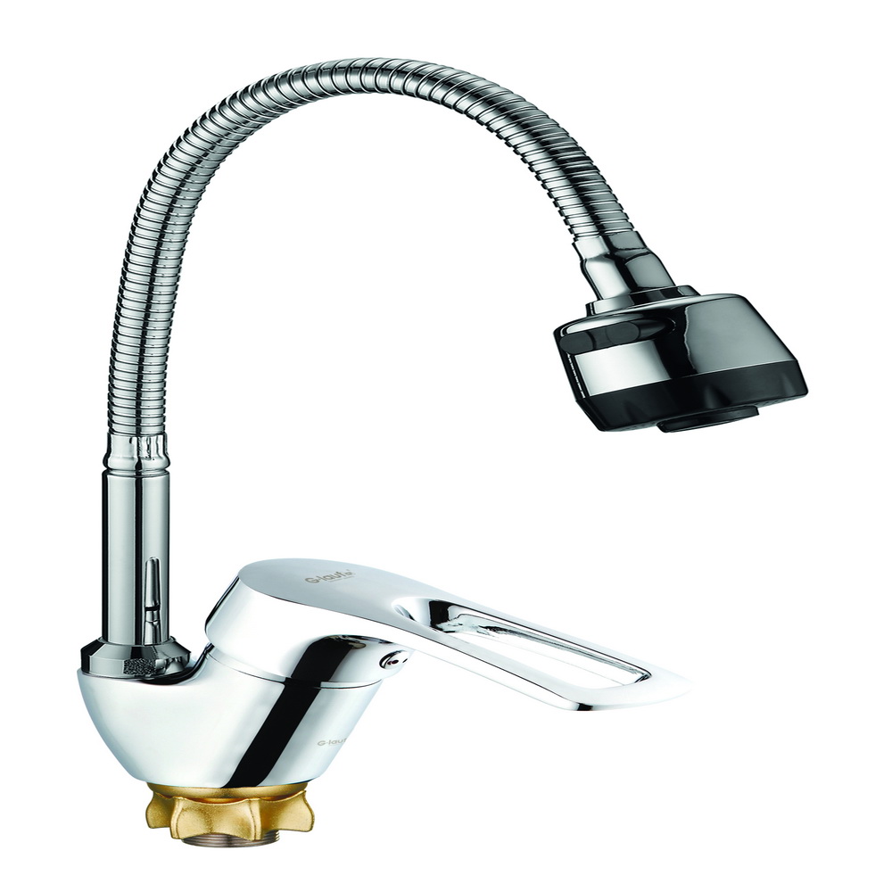 см-ль для кух. мойки, технология производства литьё под давлением, материал корпуса цинк (ZAMAK), с пов. гибким круглым изливом 360°, картридж ?40, покрытие хром, крепление гайка корона- Производитель G-lauf