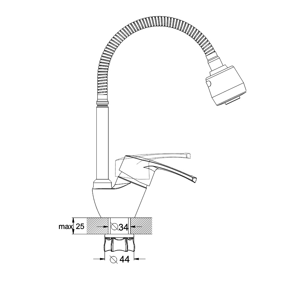 Смеситель для кухни с гофр. изливом, ?40 8G4-E181