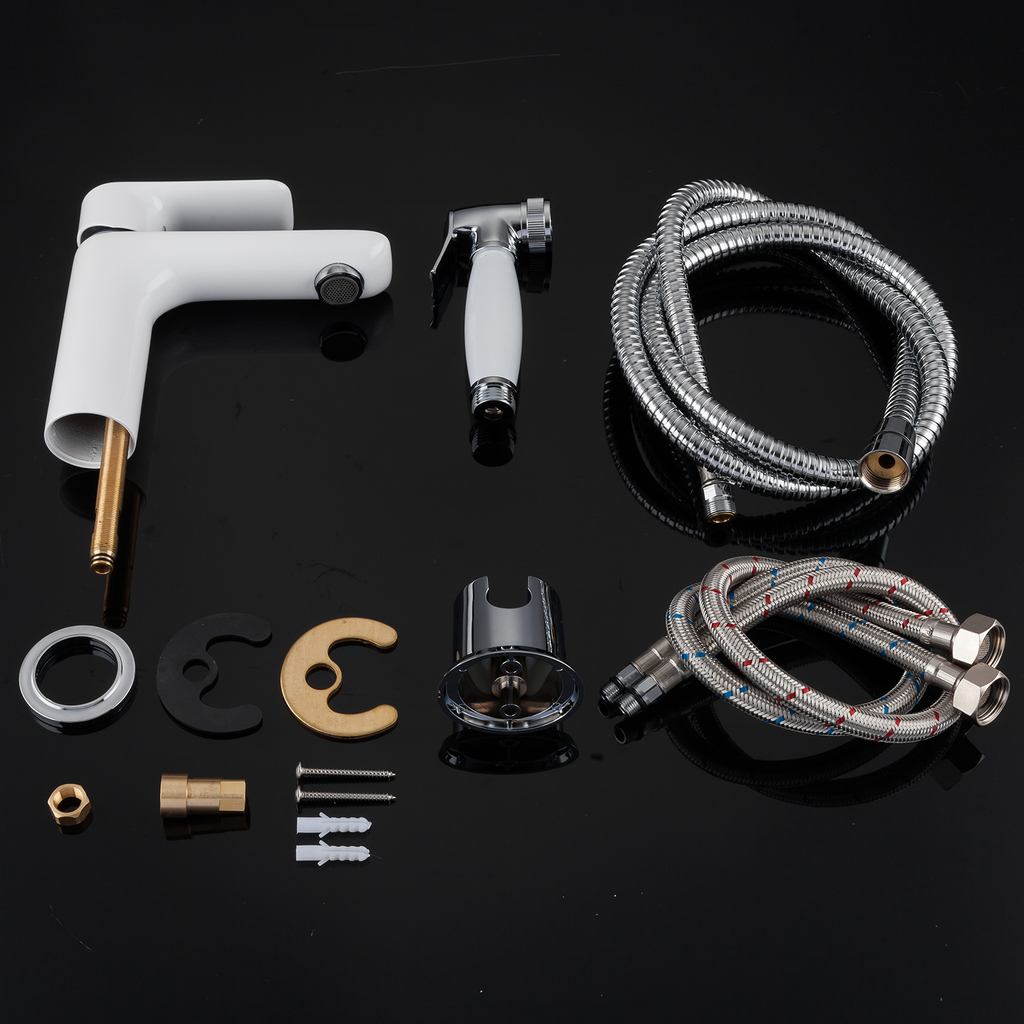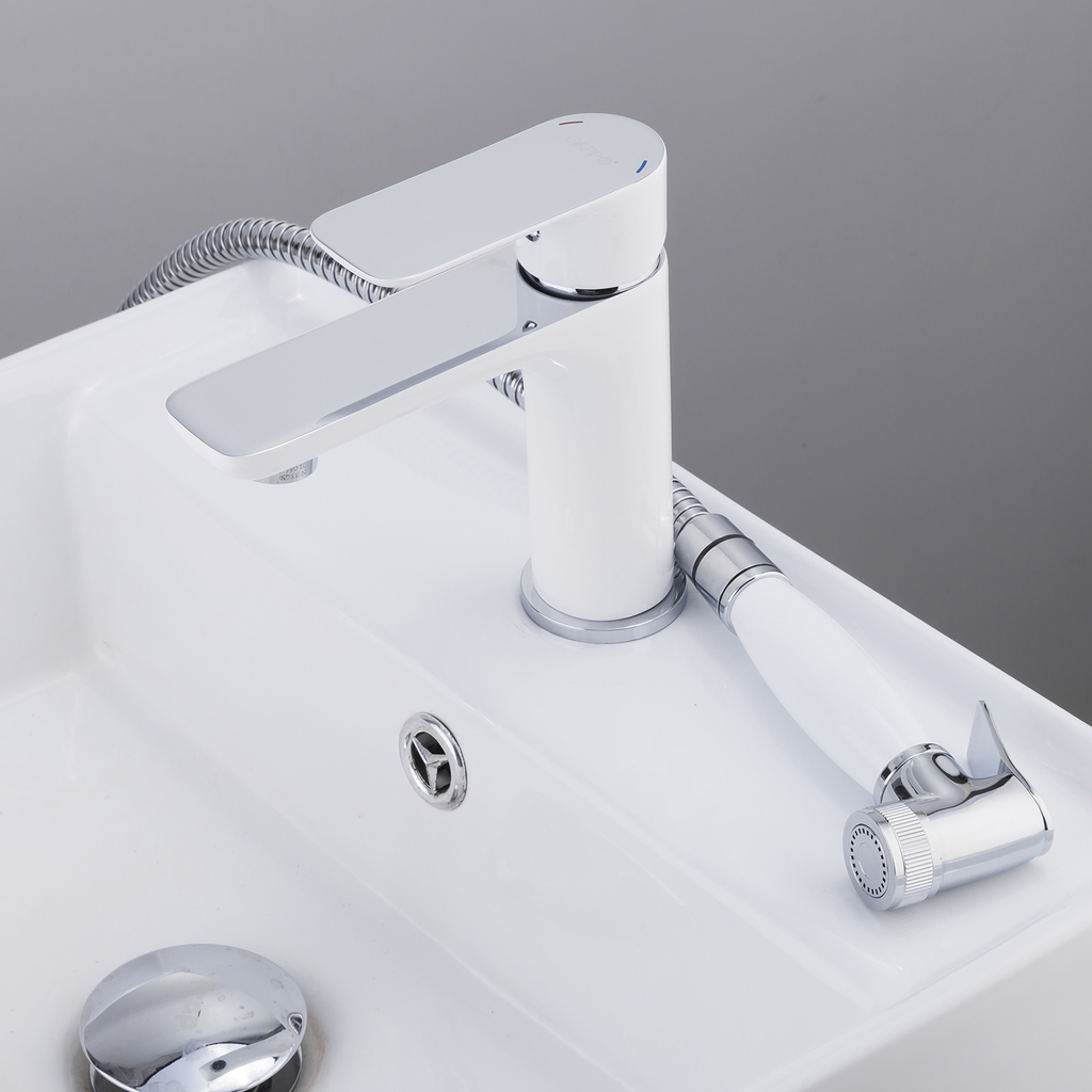 Смеситель для раковины 25к G1048-1 GAPPO с гигиенической лейкой, литой, БЕЛЫЙ-ХРОМ