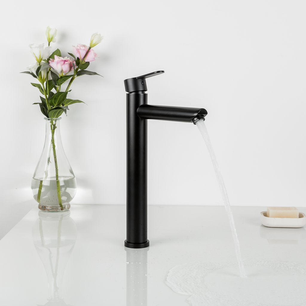 Смеситель для раковины 35к F10801-62 FRAP (высокий, литой, п/гайку, ЧЕРНЫЙ, нерж.сталь)