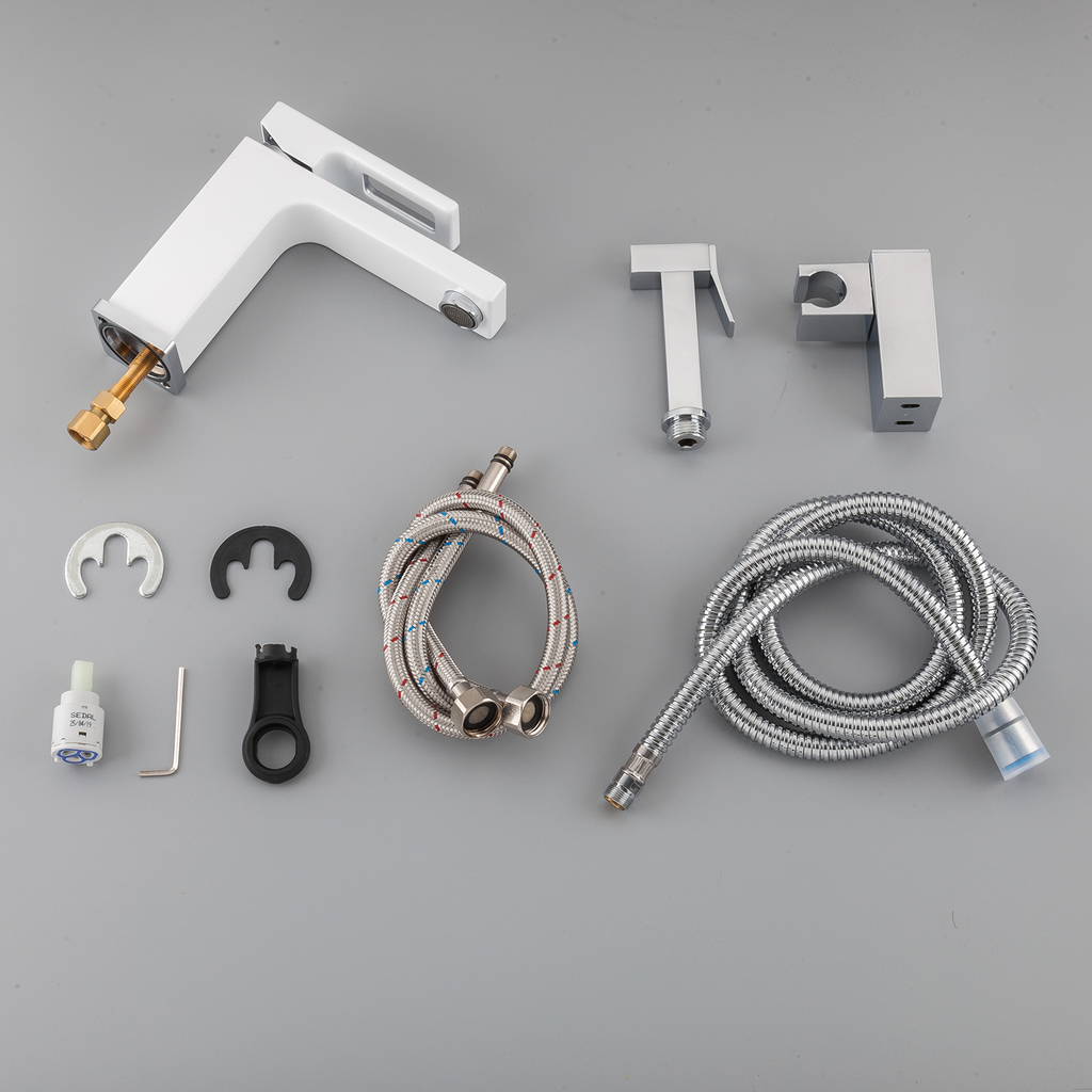 Смеситель для раковины 35к G1017-1 GAPPO литой, с гигиенической лейкой, БЕЛЫЙ-хром