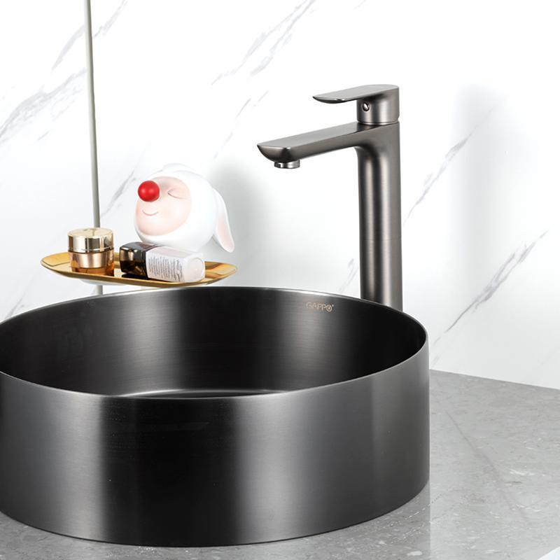 Смеситель для раковины GAPPO — элегантное решение для современного интерьера, сочетающее высокий излив и стильный цвет «оружейная сталь». Модель выполнена из литой латуни с округлыми формами, обеспечивающими эргономичность и визуальную гармонию.Функциональные преимущества: