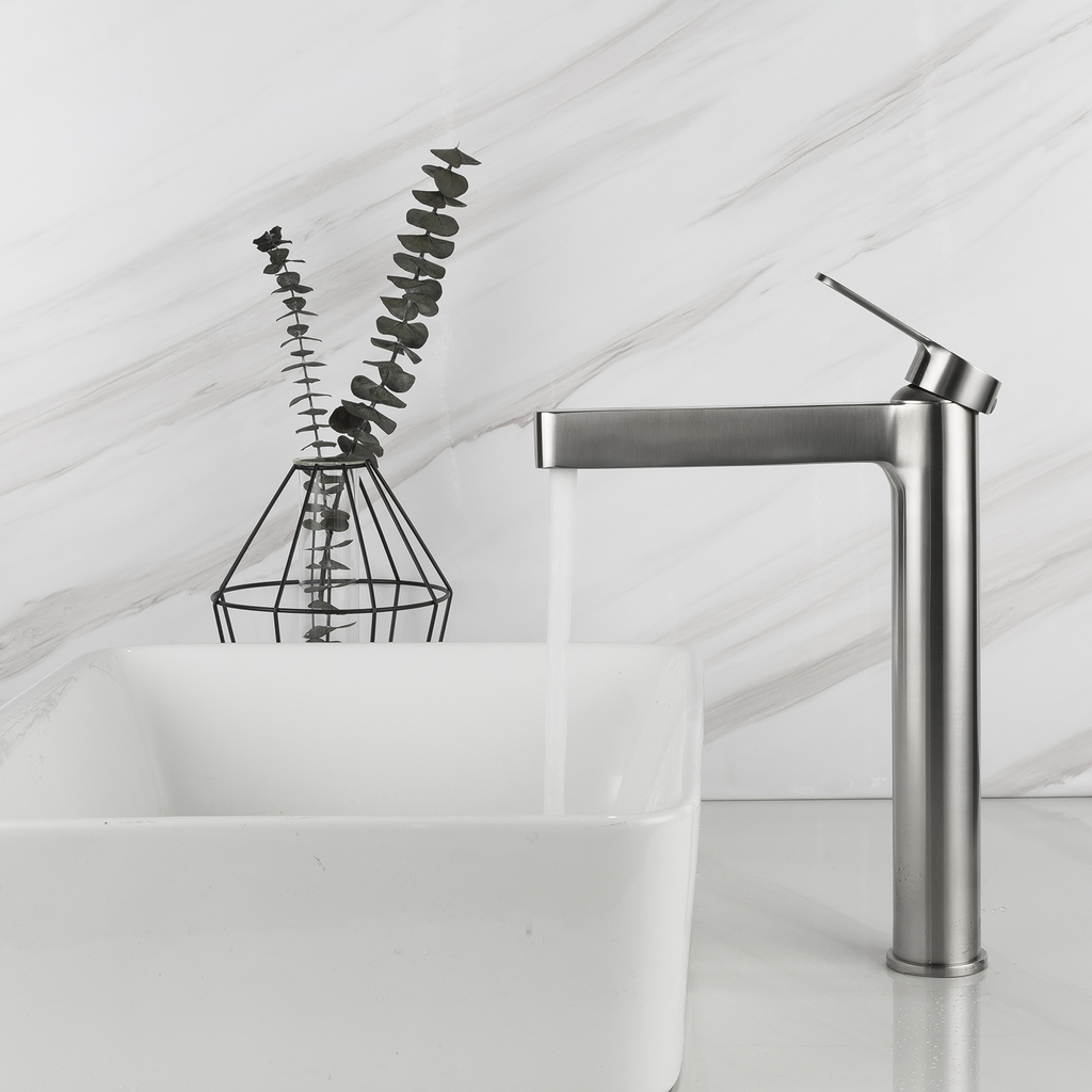Смеситель для раковины 35к G1099-32 GAPPO высокий, нерж. сталь, литой, п/гайку, САТИН