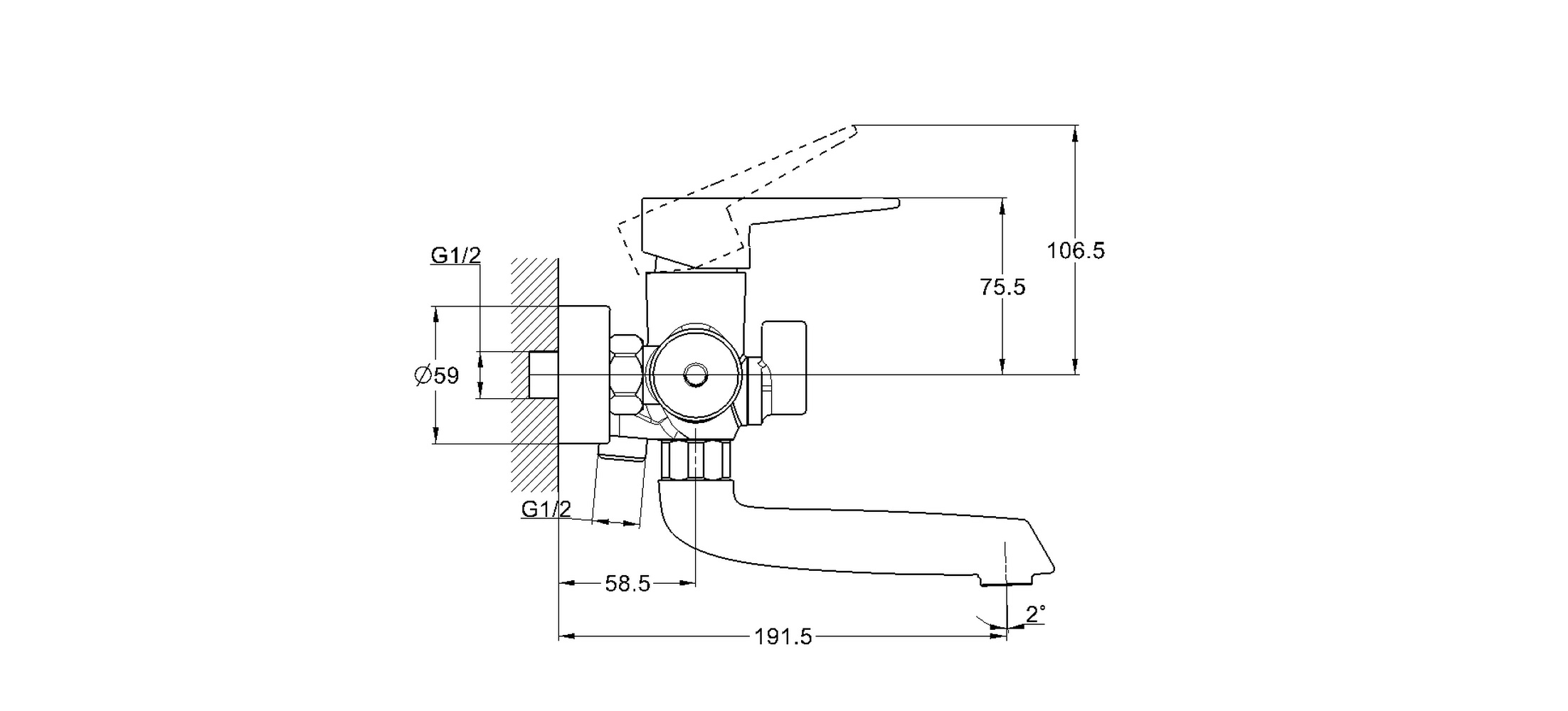 - Тип подводки Лейка, шланг 1,5 м, держатель