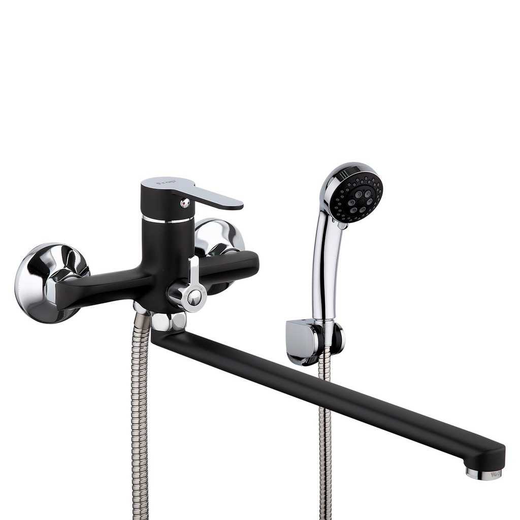 Смеситель для ванны и раковины 35к F2242 FRAP див корп (L-излив, черный/хром, латунь)