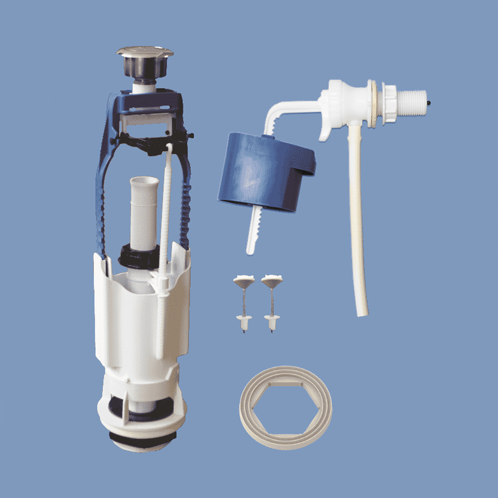 Комплекты арматуры с кнопочным одноуровневым/двухуровневым клапаном выпуска предназначены для использования с керамическими бачками, отверстие в крышке которых имеет примерный диаметр 40 мм. Комплекты с двухуровневым клапаном обеспечивают экономное расходование воды.
