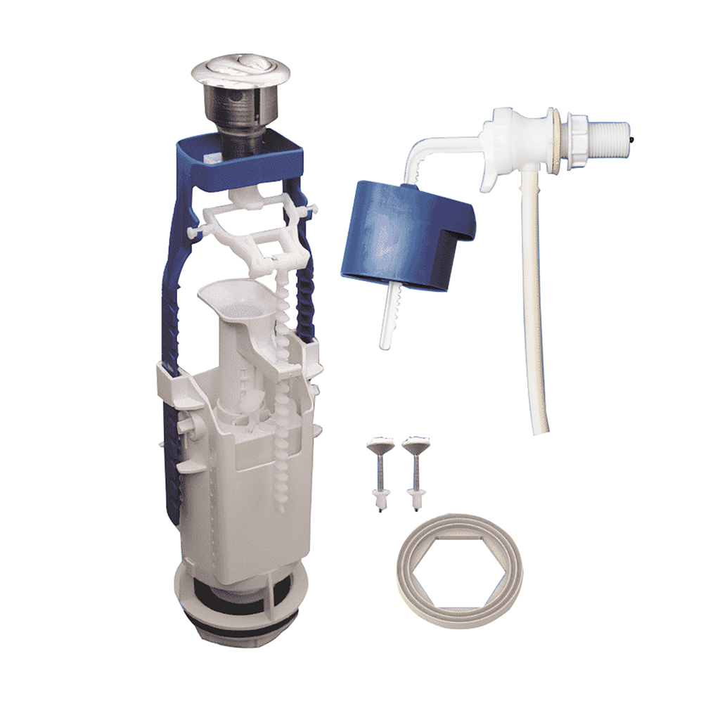 Комплекты арматуры с кнопочным одноуровневым/двухуровневым клапаном выпуска предназначены для использования с керамическими бачками, отверстие в крышке которых имеет примерный диаметр 40 мм. Комплекты с двухуровневым клапаном обеспечивают экономное расходование воды.