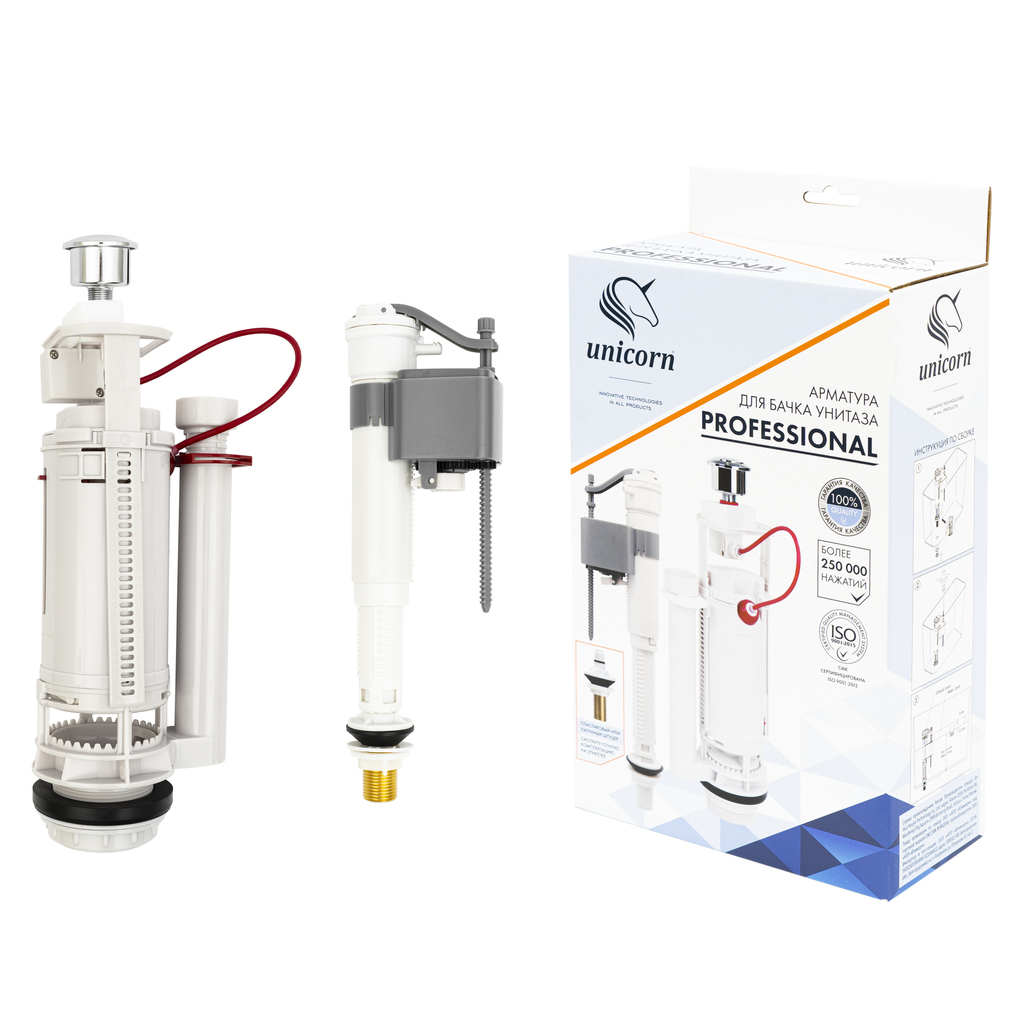 Арматура подходит как для отечественных, так и для импортных моделей бачков унитаза. Арматура регулируется под любую высоту и под любой объем бачка унитаза. Имеет низкую чувствительность к перепадам давления воды. Тихое и быстрое наполнение водой.