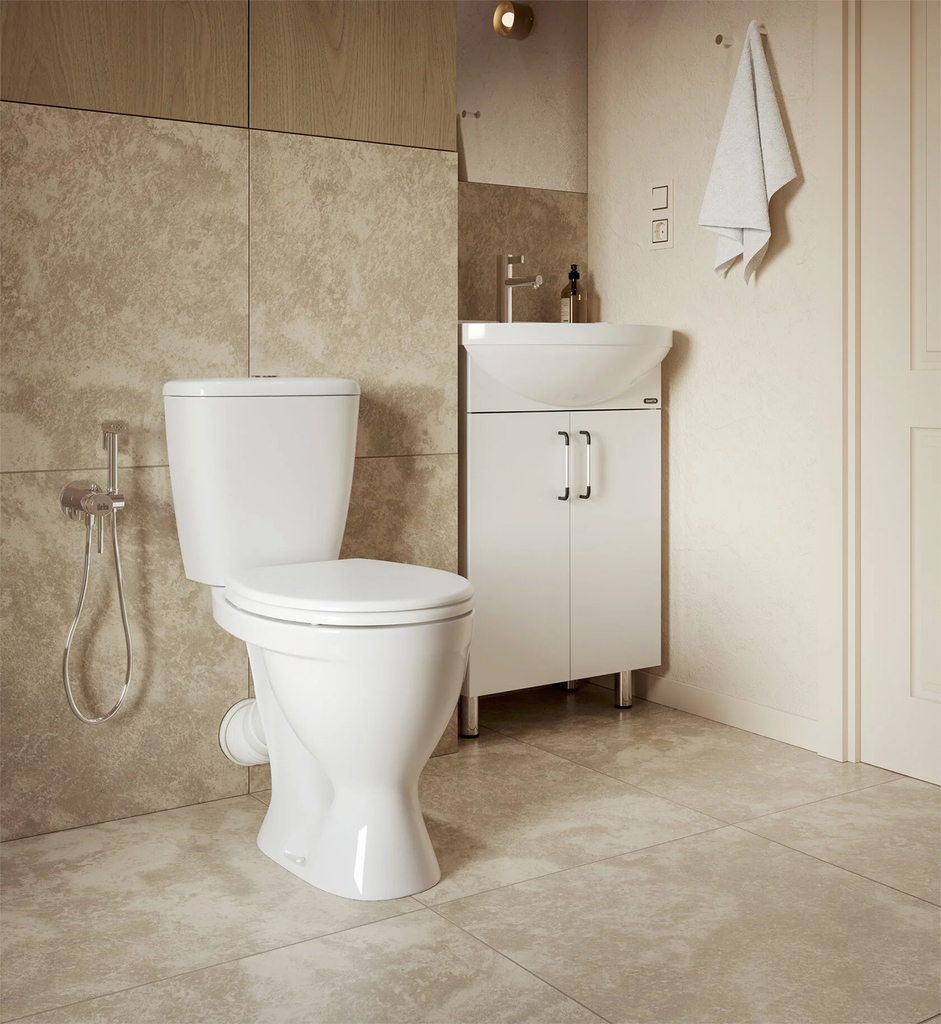 Унитаз-компакт "Рондо" (кос, нижн, арм. 2 реж. Уклад, сид. полипроп.) (Sanita)