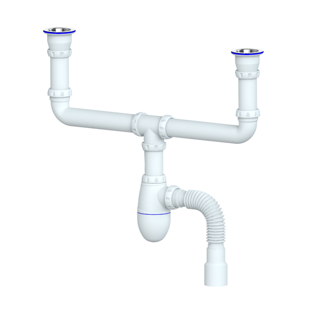 Сифон 1 1/2*40 B749 двойной, с гофрой 40*40/50 UNICORN