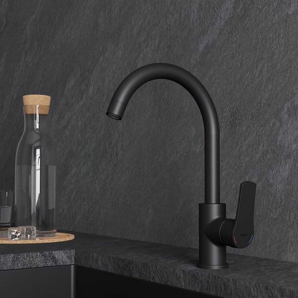 Смеситель для кухни 35к Milardo M01BLJ0M05 "Meal" высокий пов. излив, п/гайку, ЧЕРНЫЙ матовый