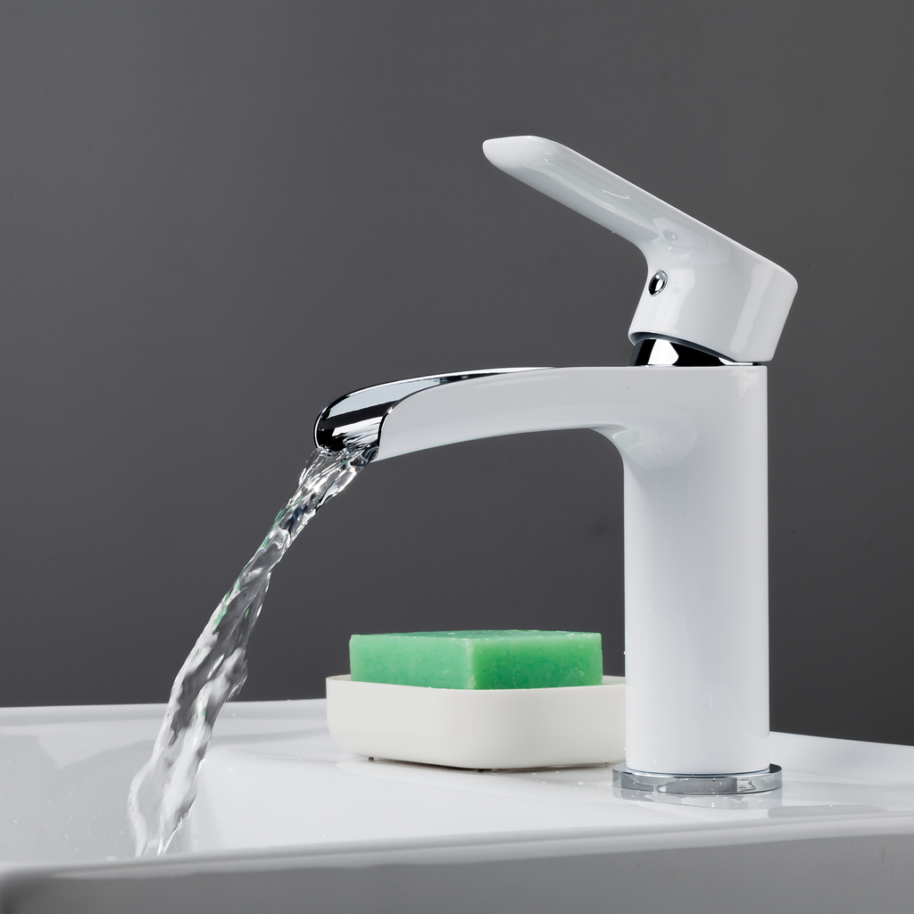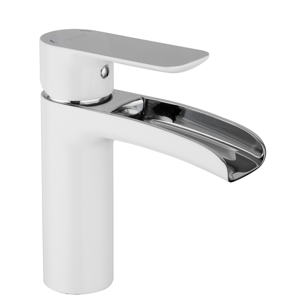 Смеситель для раковины 25к G1048-8 GAPPO литой, каскадный излив, п/гайку, БЕЛЫЙ-ХРОМ
