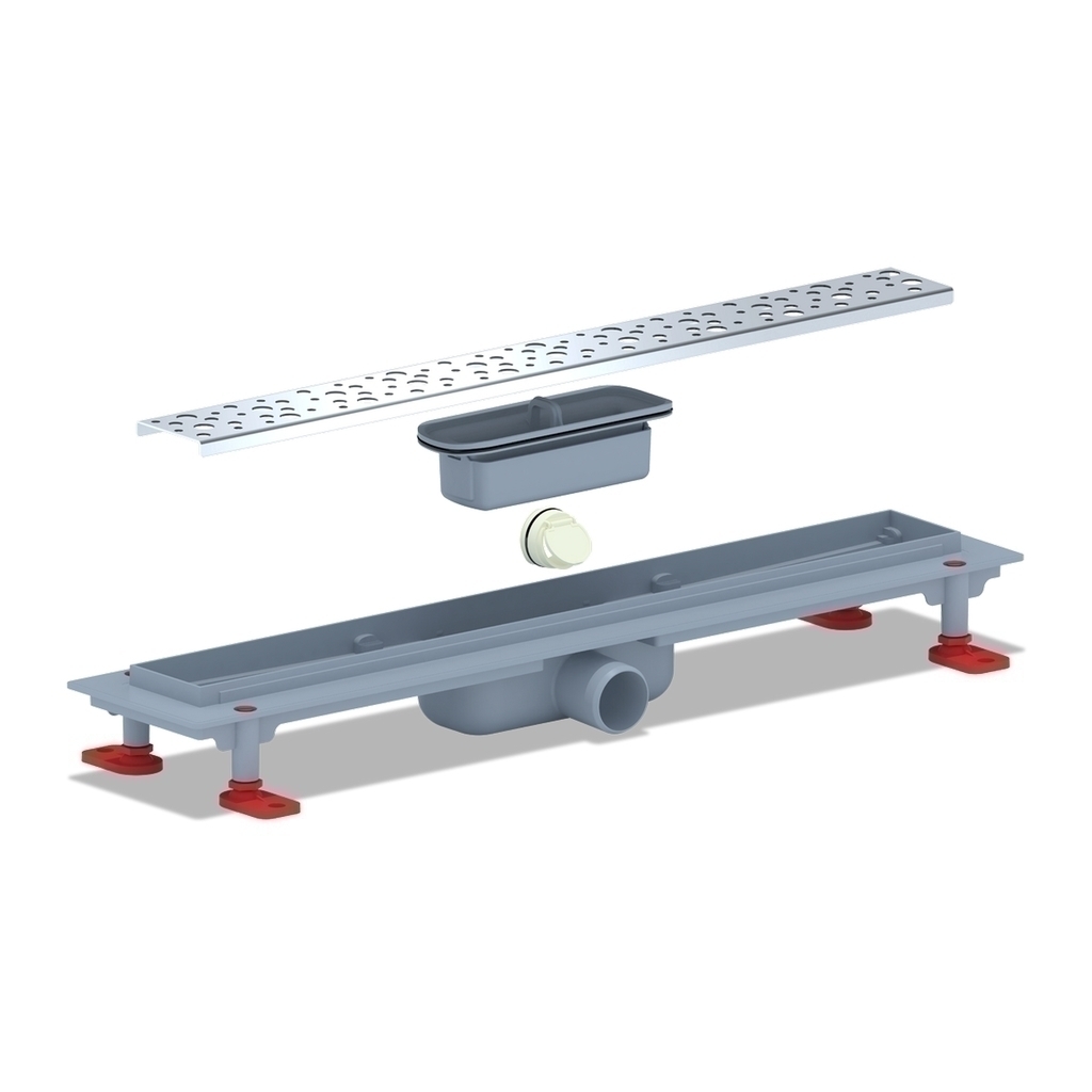 Трап изготовлен из прочного АБС-пластика, устойчивого к высоким температурам, ударным нагрузкам и воздействию влаги. Отличается надежностью конструкции и продолжительным сроком эксплуатации. Устанавливается по краям или в углах душевой комнаты и фиксируется с помощью крепежных элементов.