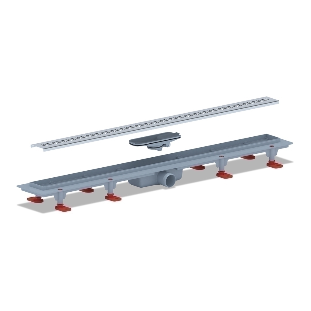 Комплектация: трап пластмассовый линейный в комплекте с решеткой 1 комплект; комплект саморезов с дюбелями DIN 7981; лента гидроизоляционная 2 штуки; паспорт с инструкцией по монтажу; короб для транспортировки 1 штука.