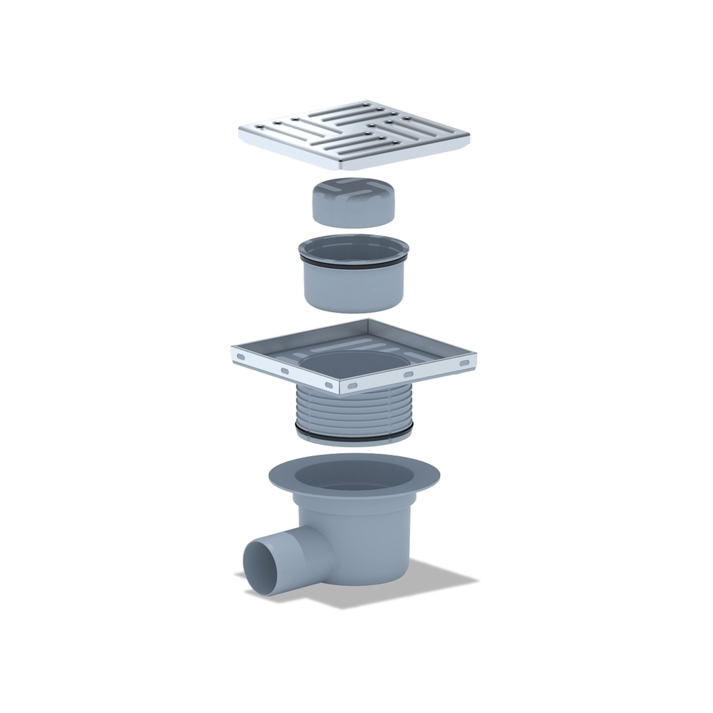 50 трап с гориз. спуском, рег решетка 150х150 нерж, СУХОЙ АНИ пласт TQ5612