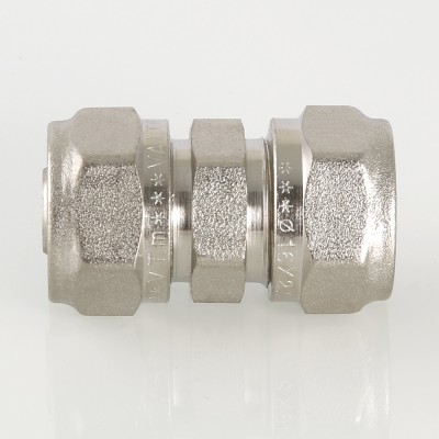 (VTm.303.N) Прямой латунный никелированный фитинг для соединения металлополимерных труб. Имеются равнопроходные модели и модели с переходом на другой диаметр.