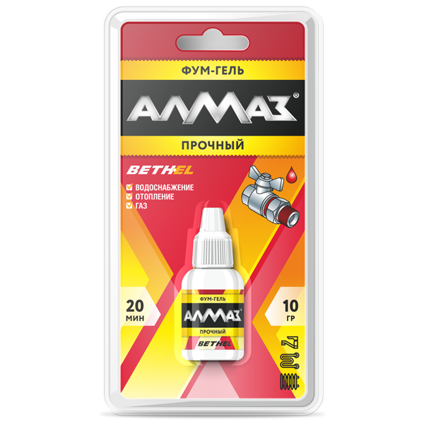 Фум-гель «Алмаз» прочный предназначен для надежной герметизации и фиксации металлических резьбовых и фланцевых соединений. Применяется при монтаже систем отопления и водоснабжения. Заменяет фум-ленту, нить, паронит. Предотвращает протечки и разгерметизацию при температурных колебаниях. Оптимальный результат применения для труб диаметром: от 1/2" до 2". Возможна разборка соединения и корректировка деталей во время монтажа. Защищает резьбу от коррозии, равномерно распределяет нагрузку по всей длине резьбы. Устойчив к ГСМ, антифризам, газу и воде. Предназначен для работы в условиях вибрации, предотвращает самоотвинчивание. Полимеризуется только при контакте с металлом и без доступа воздуха.