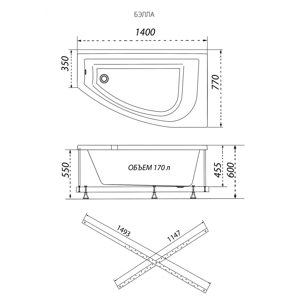 Угловая ванна Бэлла-левая