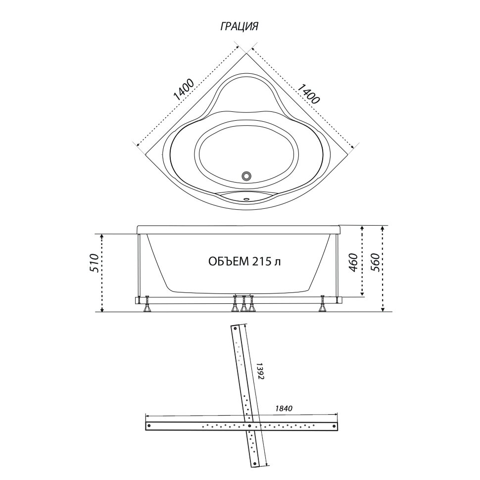 Угловая ванна Грация 140