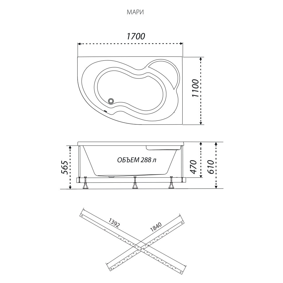- Длина 1700 мм