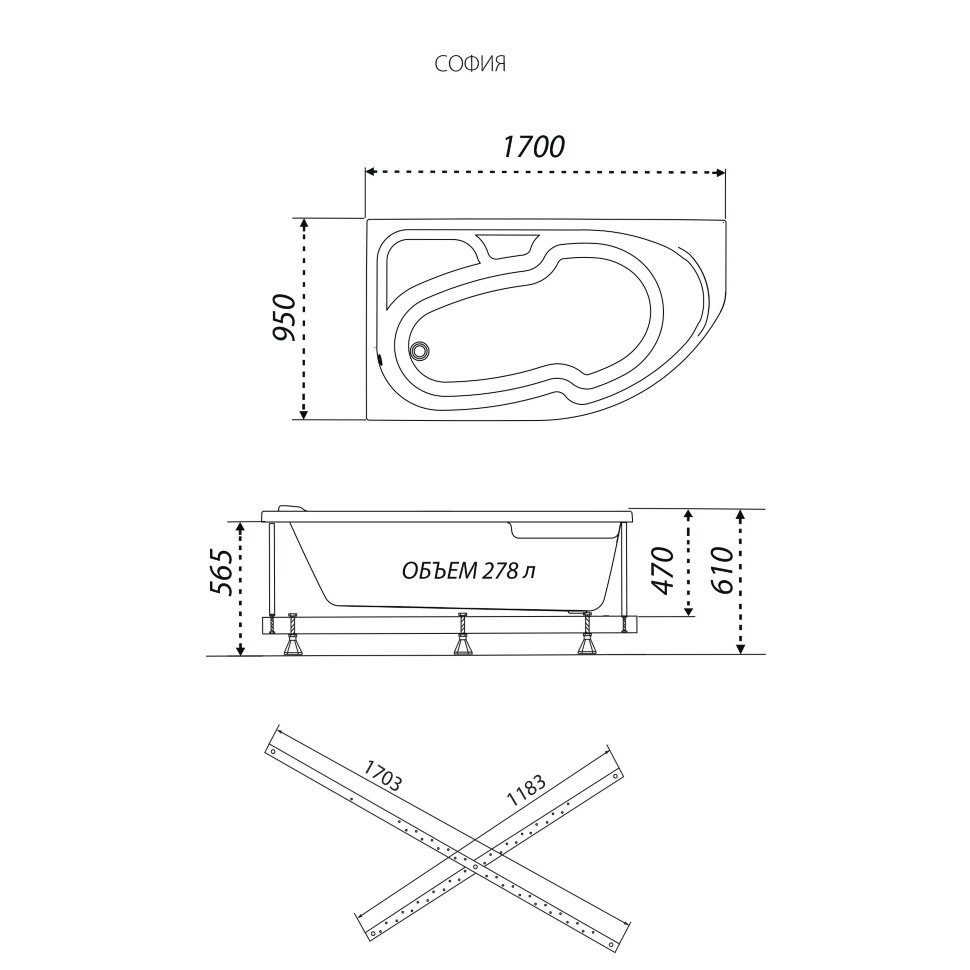 - Длина 1700 мм