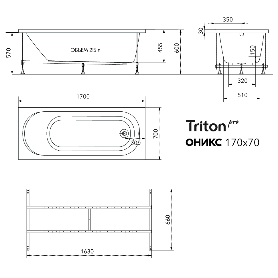 Ванна акриловая Оникс 180х75