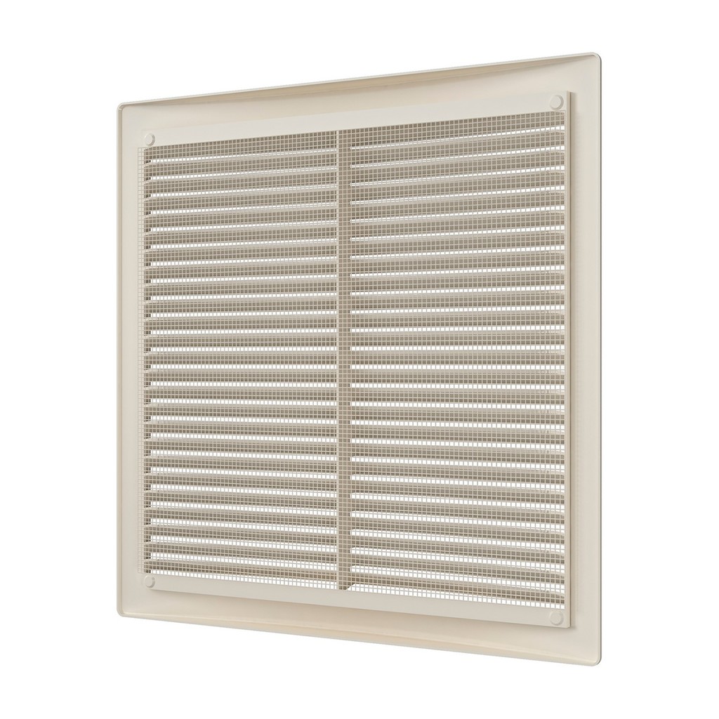 Вентиляционная решетка имеет наклонные жалюзи и оснащена защитной сеткой от насекомых.