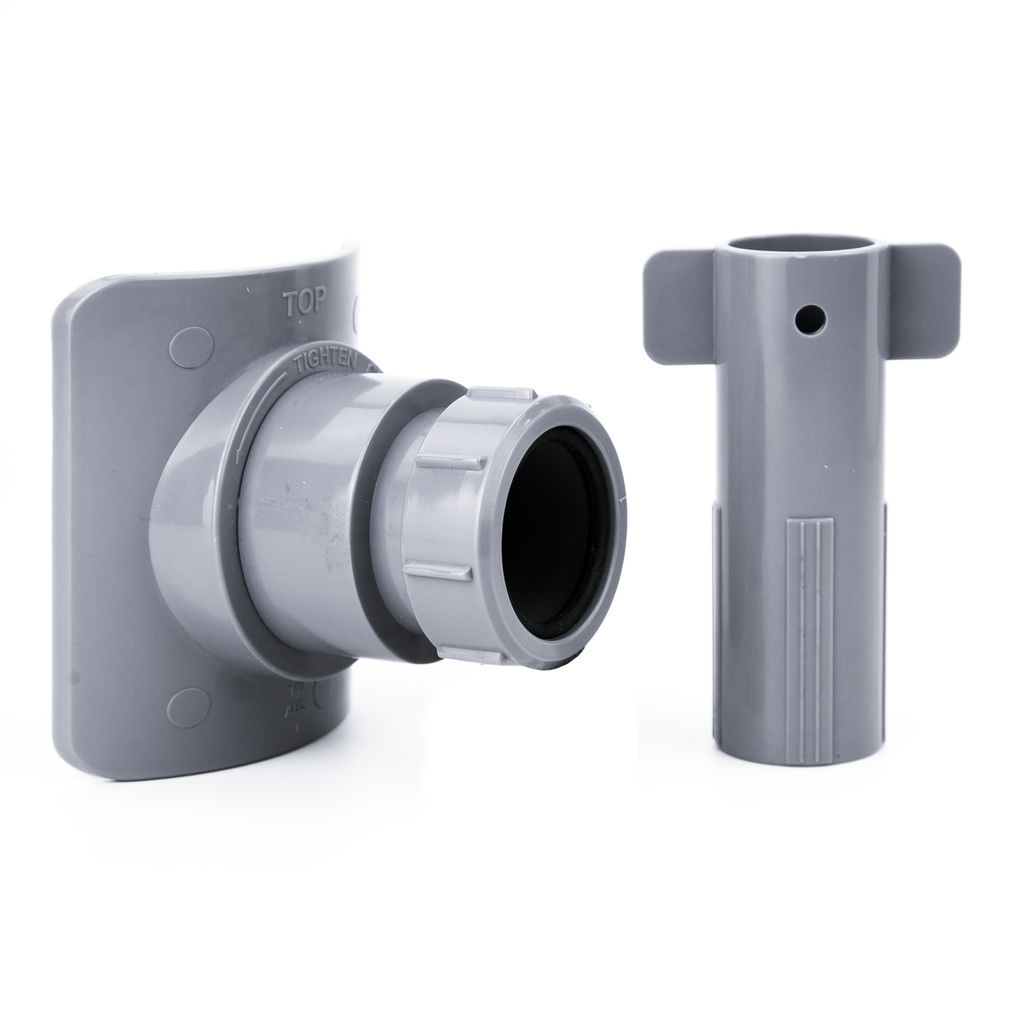 Врезка (адаптер) в канализационную трубу предназначен для отвода сточных вод поступающих по трубопроводу диаметром 40/50 мм путём его врезки в существующую магистральную канализационную трубу 110 мм. Он незаменим когда необходимость в отводе стоков возникла через какое-то время после монтажа канализационного трубопровода, а его разборка или переделка невозможны. Не требуется демонтаж существующей канализации. Для установки достаточно сделать фрезой стандартного диаметра 57 мм отверстие в трубе и вручную установить врезку, надежно и герметично затянув её ключом, идущим в комплекте. Отвод сточных вод можно выполнить, присоединив на вход врезки отвод или трубу диаметром 50 мм или пластиковые переходы 50/40, 50/32.Установка возможна как для вертикально, так и горизонтально расположенной магистральной трубы.