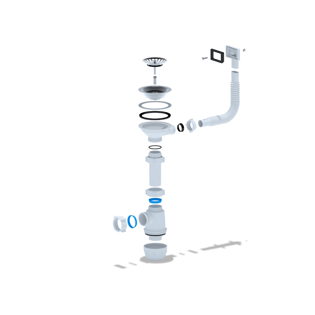 Сифон сливной АНИ пласт A0145S для кухонных моек с диаметром сливного отверстия 90-98 мм, бутылочного типа с увеличенным корпусом, с разборным выпуском и нержавеющей решеткой, с гибким прямоугольным переливом. Корпус перелива оборудован универсальной прокладкой для круглых и прямоугольных моек, нужная сторона прокладки достигается путем переворота. Выход для подключения к канализации 40мм. Высота 105 - 185 мм.