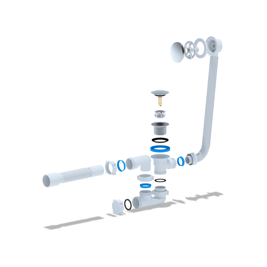Сифон комплектуется металлическим выпуском "клик-клак" с сеткой. Механизм "клик-клак" приводится в действие путем нажатия на выпуск, при этом открывается или блокируется выпуск воды в канализацию.