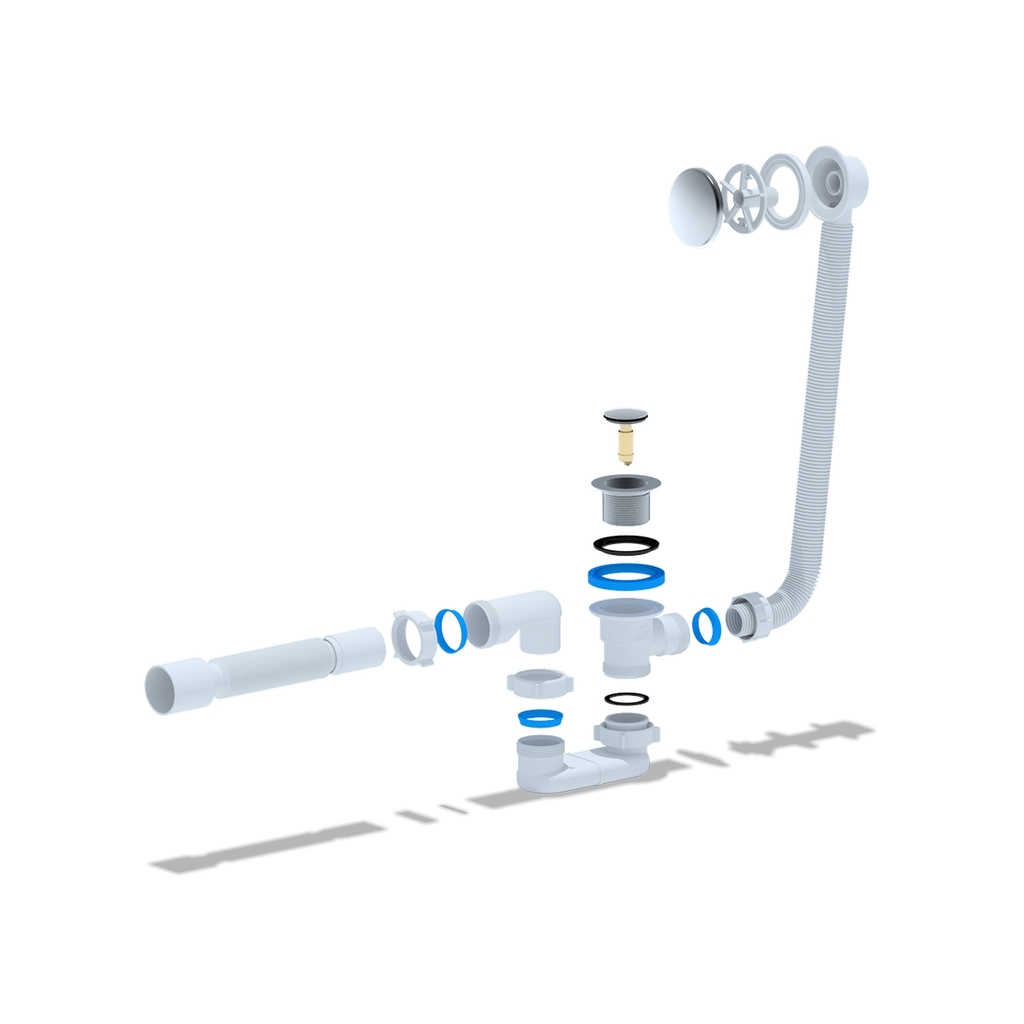 Основным преимуществом плоского сифона для ванны является его монтажная высота, которая позволяет его установку на ванны с низкими ножками. Сифон имеет возможность регулировки по трем направлениям: вокруг выпуска ванны, изменение направления слива воды в канализацию при помощи уголка, изменение высоты сифона при помощи уголка (минимальное). Форма сифона позволяет поддерживать хорошую пропускную способность слива сточной воды, выполняя свою главную функцию - формирование гидрозатвора для отсечения неприятных запахов из канализации.