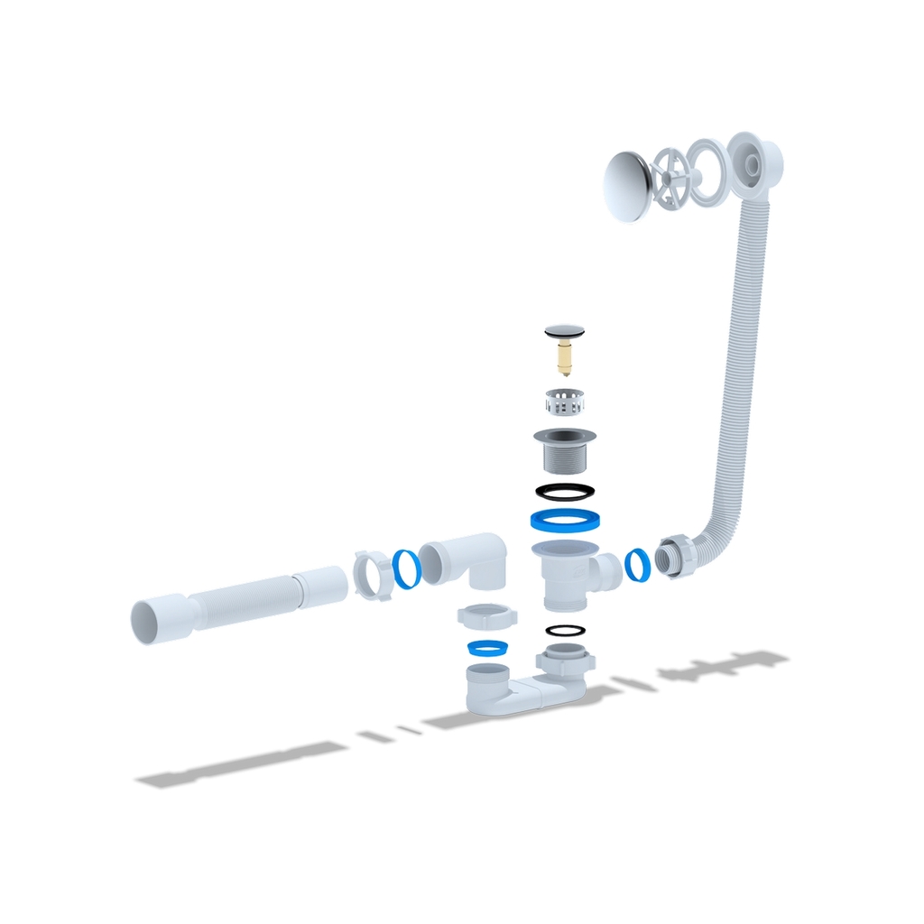 Основным преимуществом плоского сифона для ванны является его монтажная высота, которая позволяет его установку на ванны с низкими ножками. Сифон имеет возможность регулировки по трем направлениям: вокруг выпуска ванны, изменение направления слива воды в канализацию при помощи уголка, изменение высоты сифона при помощи уголка (минимальное). Форма сифона позволяет поддерживать хорошую пропускную способность слива сточной воды, выполняя свою главную функцию - формирование гидрозатвора для отсечения неприятных запахов из канализации.