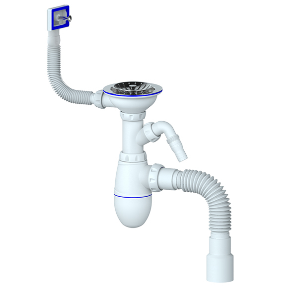 Сифон 3 1/2*40 B435V с прямоуг. перел, с носиком, с гофрой 40*40*50 UNICORN(винт,шток,руч -латунь)