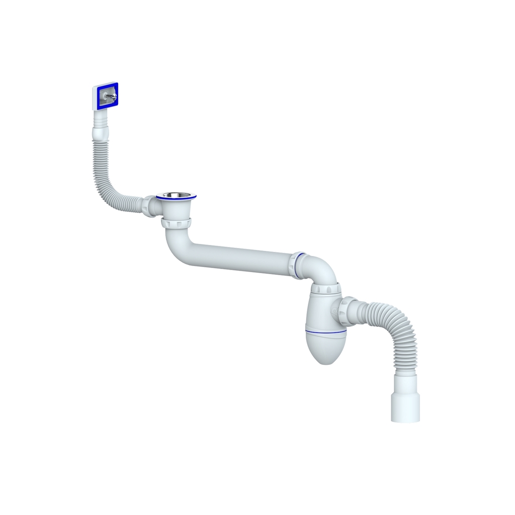 Сифон со смещением позволяет установить умывальник/мойку на любой высоте, а также освобождает дополнительное пространство под ними, поскольку гидрозатвор сифона в установленном виде будет располагаться дальше от центра умывальника или мойки.