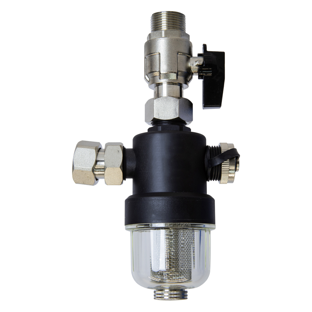 Двойная фильтрация: Сетка из нержавеющей стали AISI 304 (ячейка 1000 мкм) задерживает механические примеси, а мощный магнит (8000 Гаусс) притягивает металлические частицы.