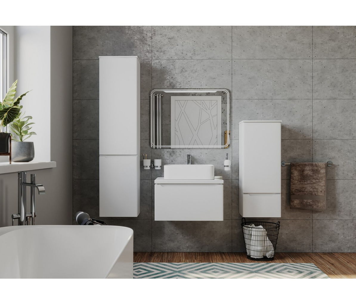 Зеркало Виктория или зеркальный шкаф со светодиодной подсветкой и сенсорным выключателем создают единый гармоничный ансамбль с минималистичной мебелью тм Mixline.